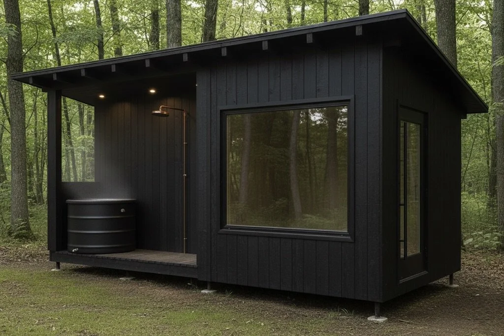 Dedicated ice bath and shower zone integrated within the footprint, completing the full contrast therapy experience.